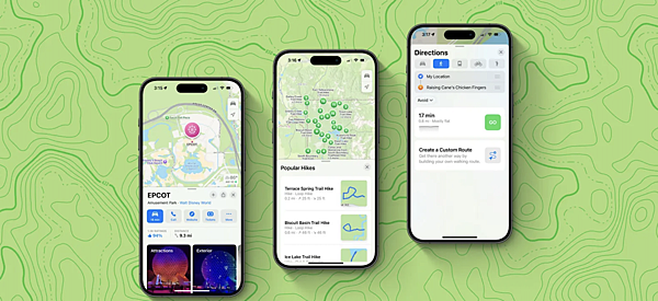 地圖應用程式提供詳細的步道網路和遠足路線,包括所有63個美國國家公園。